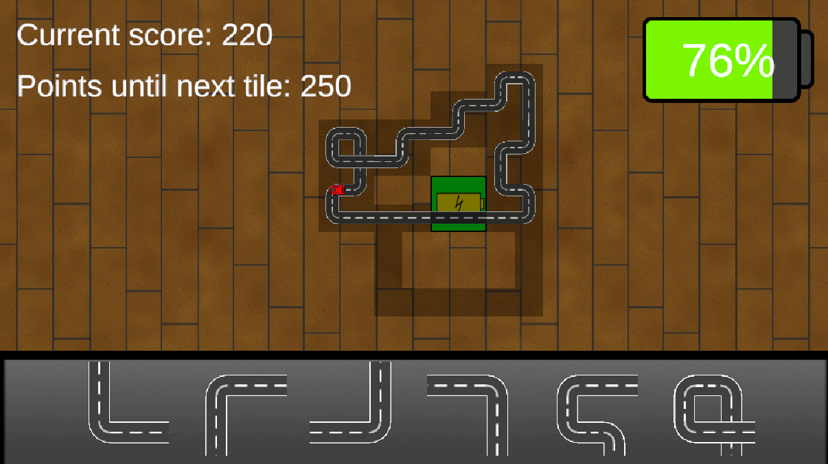 Build, destroy and rebuild the road to keep the car on the track, while trying to visit new spaces to gain points.